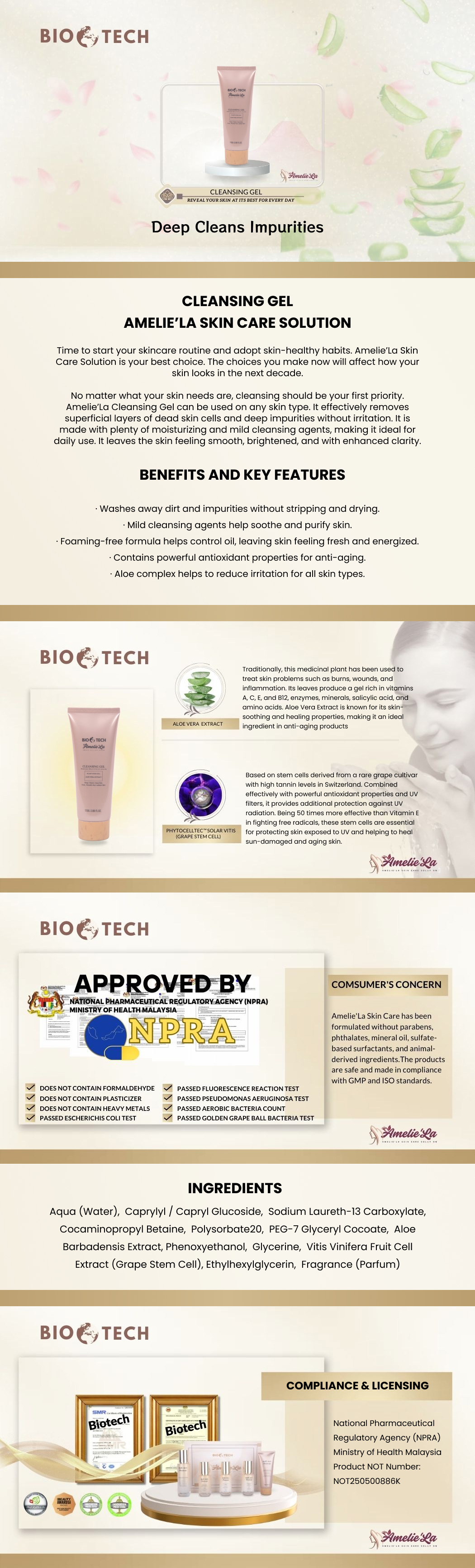 Amelie’La Skin Care has been formulated without parabens, phthalates, mineral oil, sulfate-based surfactants, and it free from animal-derived ingredients. The products are safe and made in compliance with GMP and ISO standards.